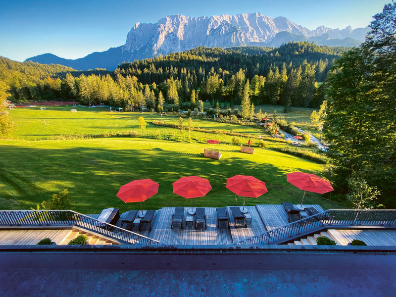 The Elmauer Alm belongs to Schloss Elmau and is a 40 minute walk from the property. It boasts breathtaking panoramic views of the Karwendel and Wetterstein mountain ranges and serves traditional Bavarian dishes.